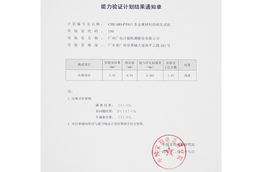 安全檢測中心以優異成績通過中國家用電器研究院關于“CHEARI-PT013 非金屬材料的球壓試驗”能力驗證。