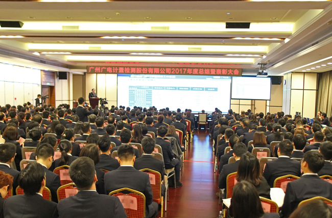 凝心聚力創(chuàng)佳績(jī),砥礪奮進(jìn)繪新篇。1月26日,廣電計(jì)量2017年度總結(jié)暨表彰大會(huì)成功召開,廣州無線電集團(tuán)公司領(lǐng)導(dǎo)及各部門領(lǐng)導(dǎo)、廣電計(jì)量經(jīng)營管理團(tuán)隊(duì)、各子公司、各中心(部門)骨干員工代表齊聚廣州,共襄年度盛會(huì)。會(huì)議回顧年度大事,系統(tǒng)總結(jié)2017年取得的經(jīng)營管理成果,表彰先進(jìn)團(tuán)隊(duì)及個(gè)人,并針對(duì)2018年工作進(jìn)行部署。廣州無線電集團(tuán)副董事長(zhǎng)、總裁、黨委副書記、廣電計(jì)量董事長(zhǎng)黃躍珍發(fā)表重要講話,廣電計(jì)量總經(jīng)理、黨委副書記黃敦鵬代表公司作2017年度經(jīng)營工作總結(jié)報(bào)告,會(huì)議由廣電計(jì)量副總經(jīng)理曾昕主持。此外,大會(huì)特邀十余位計(jì)量檢測(cè)領(lǐng)域?qū)<矣H臨現(xiàn)場(chǎng),共享豐收喜悅。