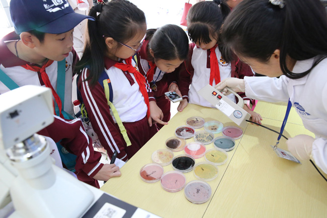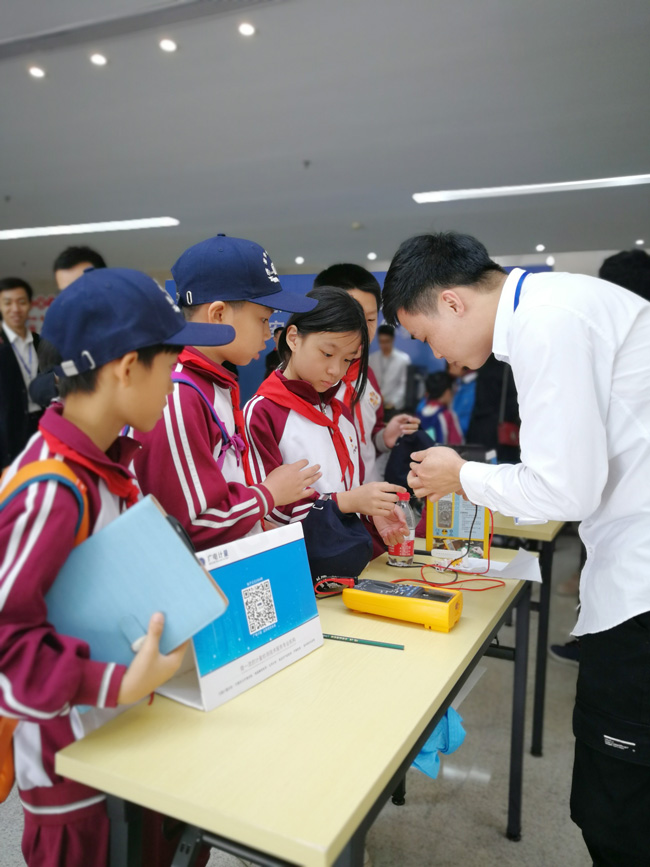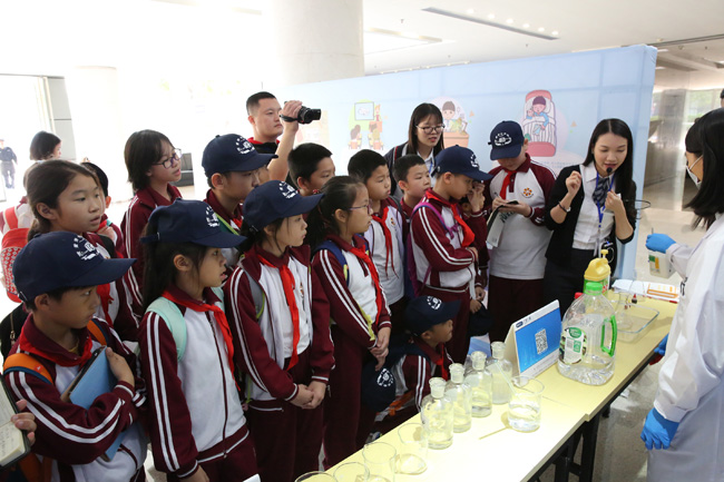 走進互動體驗區,接地氣的宣傳展板和各種有趣好玩的小實驗頓時吸引了小記者們的目光。瞬間變色實驗、火山噴發實驗、手機電磁輻射檢測……孩子們目不轉睛地盯著技術人員的操作,現場不時傳出陣陣驚嘆。