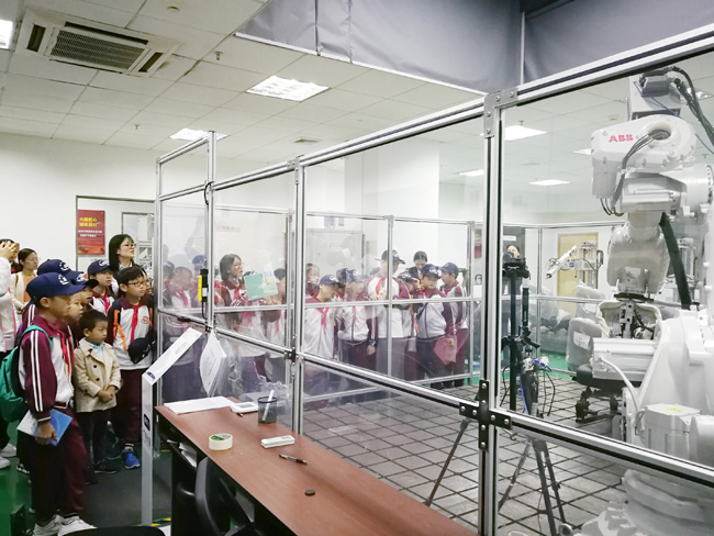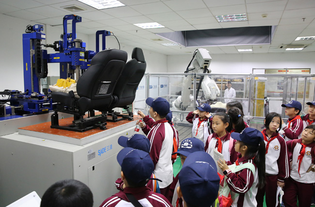 “原來可以用機器人來做測試!”“真酷!”在觀看汽車座椅測試時,孩子們對各種設備產生了濃厚的興趣,不時一邊提問一邊記錄。