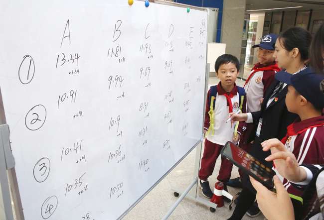默數10秒,誰的時間最準?在“誰是時間超人”游戲環節,小記者們分組競賽,表現不俗。
