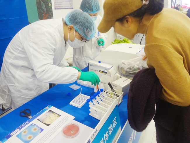 除參觀講解外,在主辦方設(shè)置的科普區(qū)、檢測(cè)服務(wù)區(qū)及美食品嘗區(qū),廣電計(jì)量也受邀來(lái)到現(xiàn)場(chǎng)開(kāi)展檢測(cè)服務(wù)與科普互動(dòng),讓市民近距離體驗(yàn)質(zhì)量魅力。在檢測(cè)服務(wù)區(qū),果蔬農(nóng)殘快檢、手機(jī)輻射檢測(cè)服務(wù)受到了市民們的熱捧,不少市民紛紛排隊(duì)將剛從超市購(gòu)買的蔬菜、水果送到展位進(jìn)行快檢。
