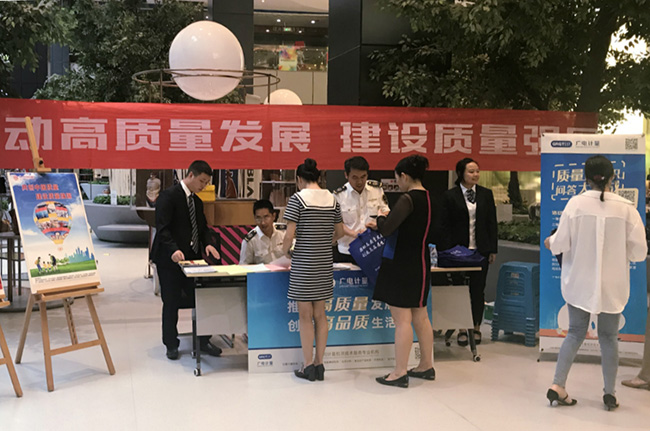 9月29日,廣州市天河區(qū)市場和質(zhì)量監(jiān)督管理局組織開展2019年“質(zhì)量月”現(xiàn)場宣傳咨詢活動。廣電計量受邀參與本次活動,免費提供宣傳咨詢服務(wù),并在現(xiàn)場設(shè)置質(zhì)量知識有獎問答游戲?qū)^(qū),以 “趣味運動+知識問答”的形式,加強與市民的互動,提高群眾對質(zhì)量安全的認識。