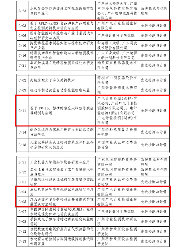 6月20日,廣東省測量控制與裝備應用促進會、廣東省計量測試學會公布了《關于2020年度廣東省測量控制與儀器儀表科學技術獎評獎結果的公示》,經過各專業評審組初評和評審委員會終評,廣電計量自主研發的四個科研項目獲獎。其中,《基于UPLC-MS/MS食品和農產品質量與安全檢測關鍵技術研究與應用》榮獲一等獎;《基于DO-160標準的感應尖峰信號發生器研制與應用》榮獲二等獎;《燈具關鍵光學參數檢測設備便攜式校準裝置及方法研究》、《發動機高原環境模擬測試系統研發與應用》榮獲三等獎。