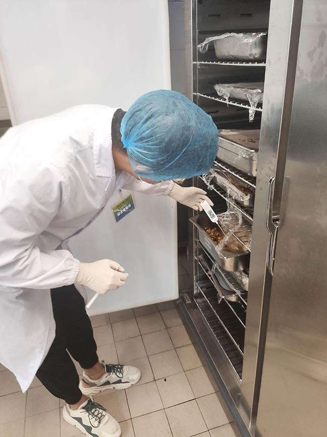 餐廳每天供餐時間從清晨到夜晚持續十幾個小時。為此,駐點保障人員需要按照食材進貨時間安排,對生鮮食材等第一時間進行抽樣快檢,檢測結果第一時間報當班監管人員。
