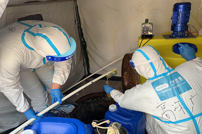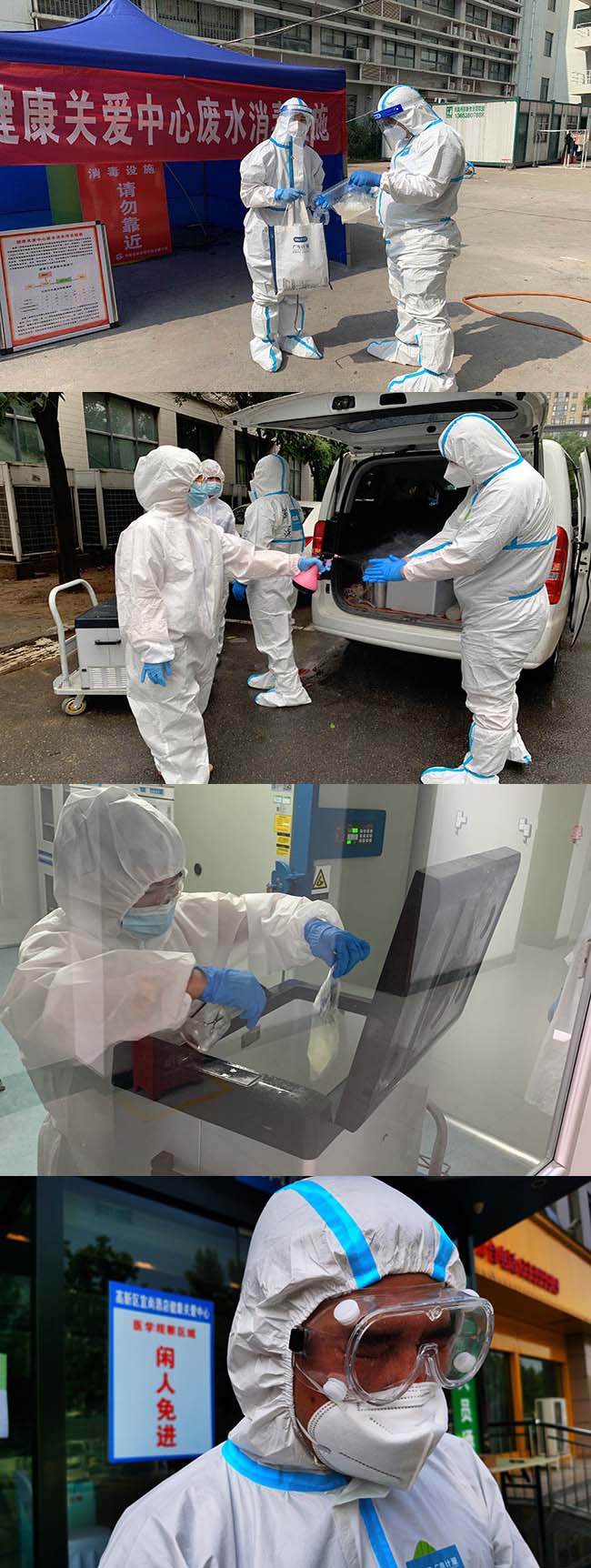 知之非難,行之不易。為切斷一切傳播風(fēng)險(xiǎn),不給病毒可乘之機(jī),確保所有人員安全,項(xiàng)目保障全流程按照最嚴(yán)格標(biāo)準(zhǔn)進(jìn)行:采樣器具定點(diǎn)專用、樣品實(shí)行三重消殺——包括采樣現(xiàn)場(chǎng)、交接現(xiàn)場(chǎng)、流轉(zhuǎn)實(shí)驗(yàn)室后分析前;相關(guān)人員穿戴防護(hù)服并集中安排住宿;相關(guān)廢物每天定點(diǎn)投放到固定醫(yī)療廢物收集點(diǎn);檢測(cè)分析指定專區(qū),數(shù)據(jù)實(shí)行網(wǎng)上電子傳報(bào)等。先鋒隊(duì)員們盡管每天都被浸泡在汗水中,卻沒(méi)有一句怨言,說(shuō)的最多一句話就是:我還行,扛得住!