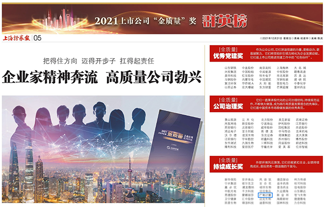 “金質量”獎聚焦公司治理完備、成長性佳、具備科創力和社會影響力的上市公司,聚集行業內有超凡遠見、卓越才能的公司掌門人,共同助推企業高質量發展,夯實資本市場全面深化改革的“壓艙石”,已成為國內上市公司領域內最權威、最具影響力的獎項之一。