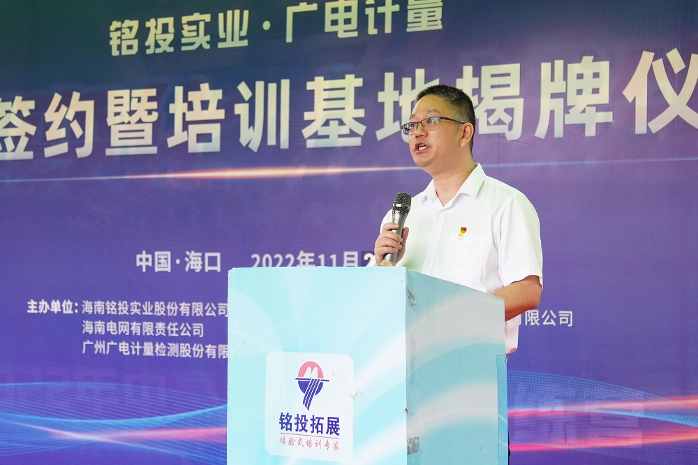 銘投實(shí)業(yè)董事長(zhǎng)蔣德喜,銘投山莊總經(jīng)理鄧一平,海南電網(wǎng)有限責(zé)任公司機(jī)巡作業(yè)中心經(jīng)理?xiàng)罱?,海南省質(zhì)量協(xié)會(huì)秘書(shū)長(zhǎng)陳燕,廣電計(jì)量檢測(cè)(海南)有限公司(簡(jiǎn)稱(chēng)海南廣電計(jì)量)董事長(zhǎng)高歡迪,總經(jīng)理鐘毅等出席儀式。