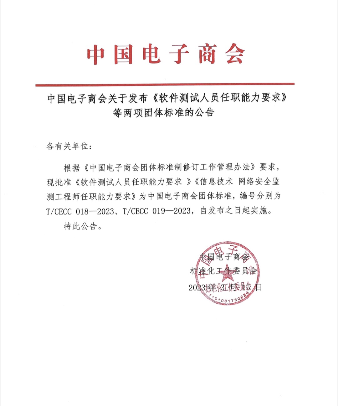 3月15日,由廣電計(jì)量主編的兩項(xiàng)團(tuán)體標(biāo)準(zhǔn)T/CECC 018—2023 《軟件測(cè)試人才技能評(píng)價(jià)規(guī)范》和T/CECC 019—2023 《信息技術(shù) 網(wǎng)絡(luò)安全監(jiān)測(cè)工程師任職能力要求》正式發(fā)布并實(shí)施,將為技術(shù)人員能力提升與職業(yè)規(guī)劃、企業(yè)單位高端人才引進(jìn)提供參考指導(dǎo),為各組織數(shù)字化轉(zhuǎn)型、數(shù)字中國(guó)建設(shè)注入強(qiáng)勁人才動(dòng)力。