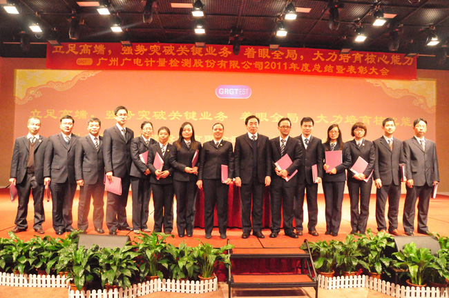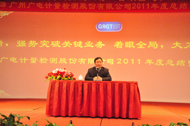 2012年元月7日下午,廣州廣電計(jì)量檢測股份有限公司2011年度經(jīng)營工作總結(jié)及表彰大會(huì)在陽光酒店隆重舉行。GRGT黃敦鵬總經(jīng)理首先代表公司就2011年度經(jīng)營情況和2012年經(jīng)營思路做總結(jié)報(bào)告。