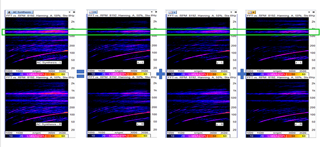 答:例如某車型在加速過(guò)程中,車內(nèi)有共振現(xiàn)象,特征頻率中心頻點(diǎn)750Hz。通過(guò)傳遞路徑分析,該問(wèn)題由固定在前圍板上的空調(diào)管路引起,從下圖可以看出空調(diào)管路的三個(gè)方向都有貢獻(xiàn)。