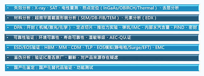 廣電計(jì)量集成電路失效分析實(shí)驗(yàn)室,配備完善的EOS/ESD/RA等測(cè)試設(shè)備及完整的失效分析手法,擁有經(jīng)驗(yàn)豐富的材料及電性能可靠性專家,可以針對(duì)IC進(jìn)行全方位的失效分析及可靠性驗(yàn)證方案的設(shè)計(jì)與執(zhí)行。
