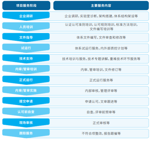 我們重點面向各行業企業、三方檢測機構等自建實驗室,提供全面專業技術服務及相關的培訓課程,根據企業所處的行業、項目進度的不同特點,量身定制“專人、專案、專責”的個性化服務,貼合企業客戶需求。具體服務流程如下:
