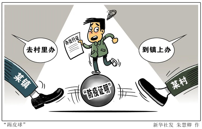 ——遭遇“踢皮球”。春節探親的王先生,因疫情被困在重慶奉節縣近一個月。最近單位要求復工,為辦回家的出行證,他跑了6趟村鎮多個部門,打了30多個電話,不是找不到人就是一問三不知,始終未辦成證明。“鎮上叫我去村里,村里又讓我去鎮上,推來推去。”