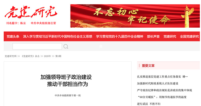 中組部《黨建研究》2020年第5期刊發(fā)了中共中央組織部干部一局的文章《加強(qiáng)領(lǐng)導(dǎo)班子政治建設(shè) 推動(dòng)干部擔(dān)當(dāng)作為》。文章分析了影響制約干部擔(dān)當(dāng)作為的問題,指出要把完善激勵(lì)干部擔(dān)當(dāng)作為制度機(jī)制作為一項(xiàng)系統(tǒng)工程予以推進(jìn),包括健全6個(gè)機(jī)制等。一起來看: