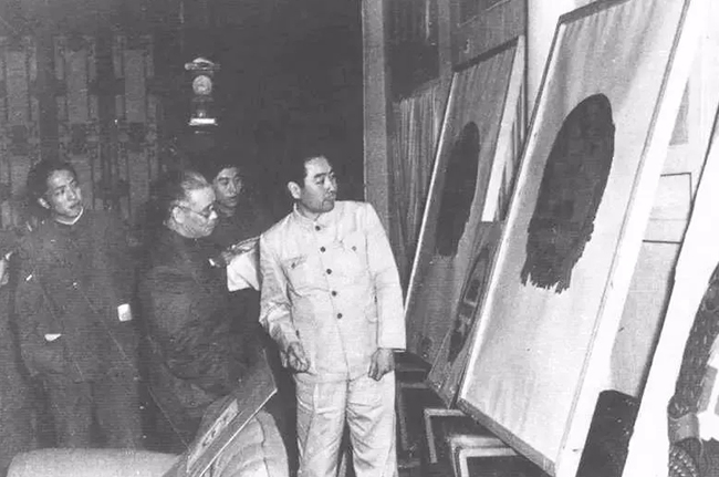 周恩來(lái)和專家們查看國(guó)徽設(shè)計(jì)方案