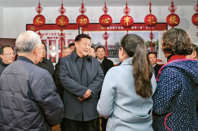 2017年12月12日至13日,中共中央總書記、國(guó)家主席、中央軍委主席習(xí)近平在江蘇徐州市考察。這是12日下午,習(xí)近平在潘安湖街道馬莊村黨員活動(dòng)室與正在學(xué)習(xí)黨的十九大精神的黨員交流。 新華社記者 謝環(huán)馳/攝