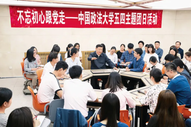 2017年5月3日,中共中央總書記、國(guó)家主席、中央軍委主席習(xí)近平來到中國(guó)政法大學(xué)考察。這是習(xí)近平在學(xué)生活動(dòng)中心參加民商經(jīng)濟(jì)法學(xué)院本科二年級(jí)2班團(tuán)支部開展的“不忘初心跟黨走”主題團(tuán)日活動(dòng)。 新華社記者 王曄/攝