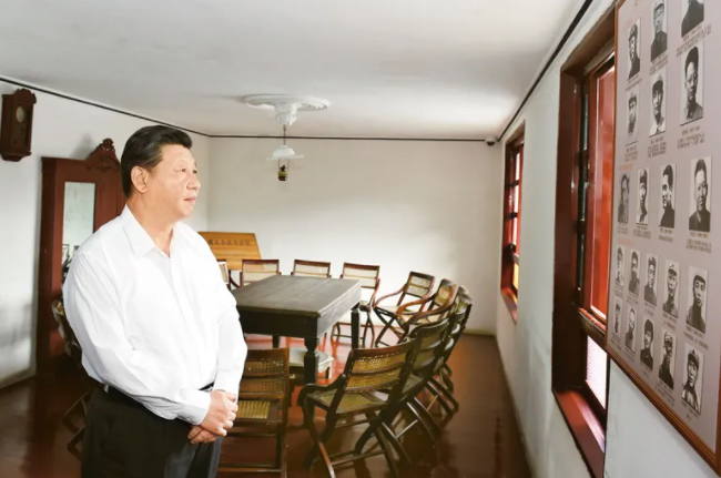 2021年6月25日,中共中央政治局就用好紅色資源、賡續(xù)紅色血脈舉行第三十一次集體學(xué)習(xí)。這次集體學(xué)習(xí)采取參觀和討論相結(jié)合的形式,這是習(xí)近平、李克強(qiáng)、栗戰(zhàn)書、汪洋、王滬寧、趙樂際、韓正等在北大紅樓參觀“光輝偉業(yè) 紅色序章——北大紅樓與中國(guó)共產(chǎn)黨早期北京革命活動(dòng)主題展”。 新華社記者 謝環(huán)馳/攝